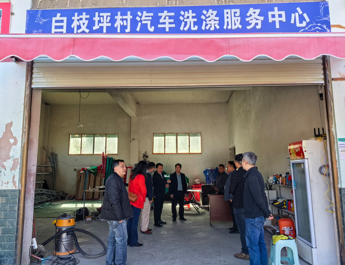 在白枝坪村助农洗车场,调研组详细了解了这一由村集体主导、在驻村干部帮助下运营的产业项目。王武林仔细询问了洗车场的运营模式、客流来源、带动村民就业增收情况以及未来发展规划,并就如何进一步提升服务质量、加强营销引流、实现稳定盈利提出了建设性意见。