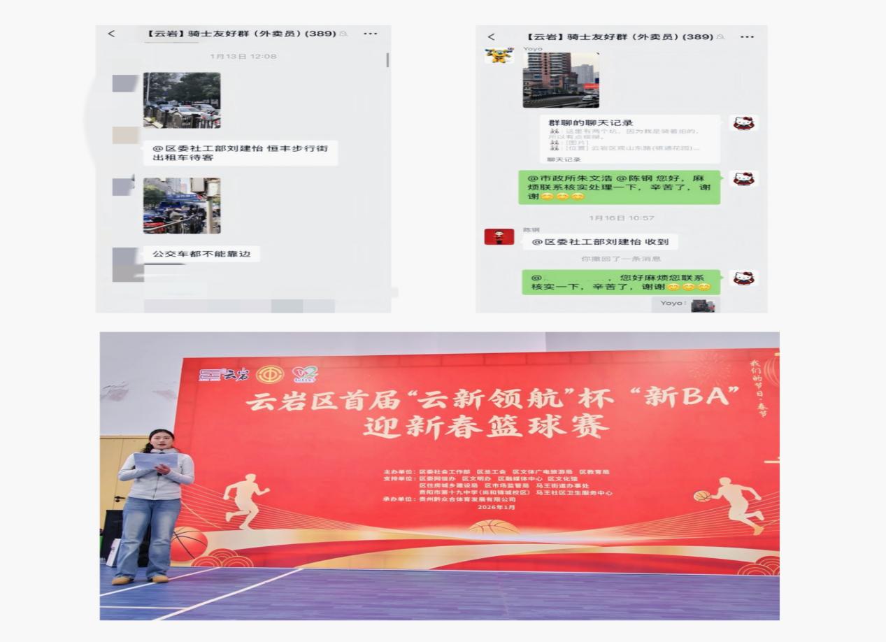 2023级社会工作专业刘建怡同学,在贵阳市云岩区委社会工作部的实践岗位上,聚焦新就业群体服务与基层治理创新,交出了亮眼的实践答卷。她积极参与“五闪”行动,系统完成外卖员、网约车司机等群体的志愿信息台账登记;通过“骑士友好群”等线上渠道收集新就业群体反映的城市治理问题;引导新就业群体发挥“移动探头”作用;全程参与云岩区首届“云新领航杯·新BA迎新春篮球赛”筹办,以专业能力赋能基层治理,让公共管理与社会工作专业价值在实践中充分彰显。