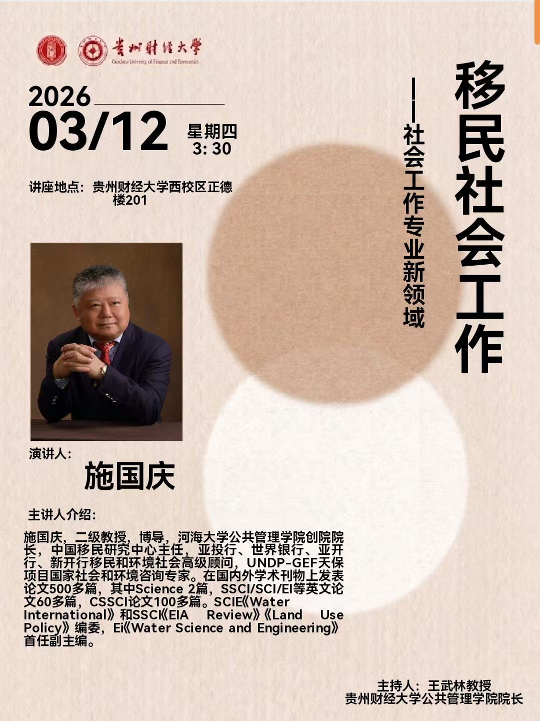 河海大学施国庆教授讲座——移民社会工作——社会工作专业新领域